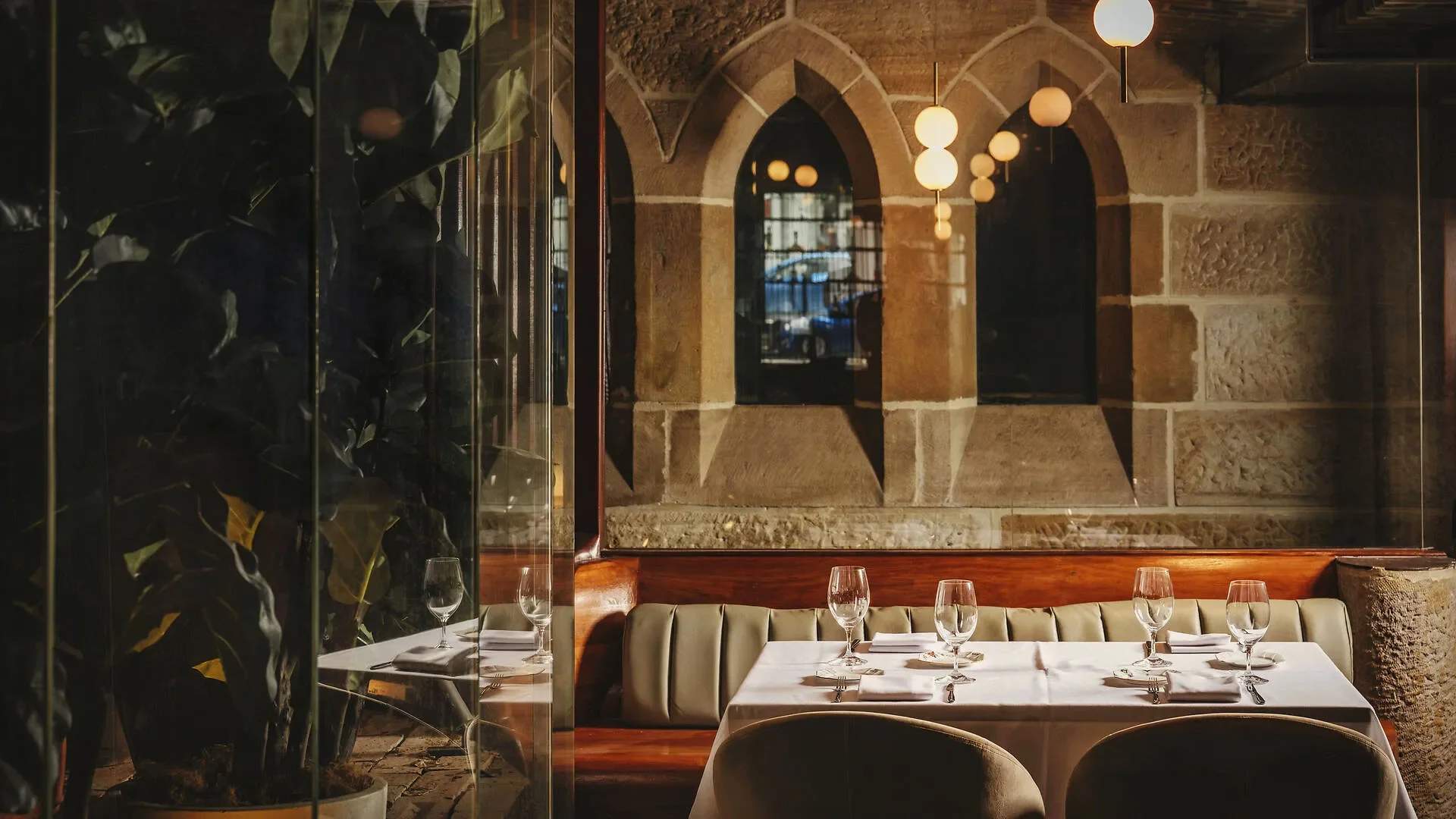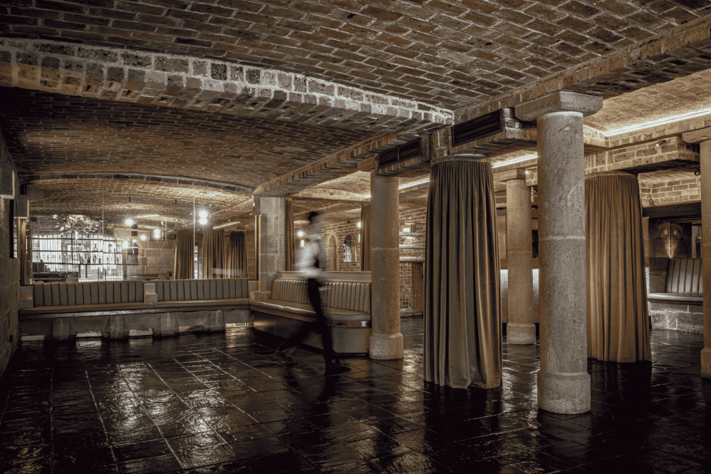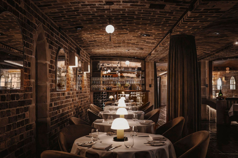 Set below street level, the venue unfolds across five distinct rooms carved from convict-chipped sandstone, reclaimed heritage brick and vaulted ceilings originally designed by Edmund Blackett for St John’s Church.